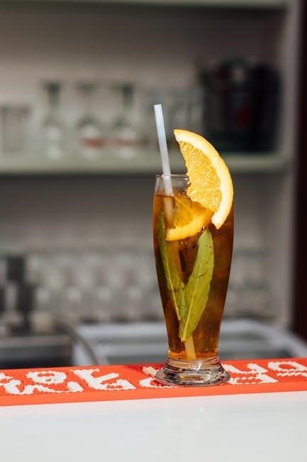 Locate the clearly marked on/off switch, which initiates and terminates the brewing cycle. Some models include a brew strength selector, allowing customization of tea flavor. The auto-shutoff mechanism is a vital safety feature. Refer to your manual for specific component locations and detailed instructions, ensuring proper assembly and operation. Understanding these parts is key to successful iced tea brewing.